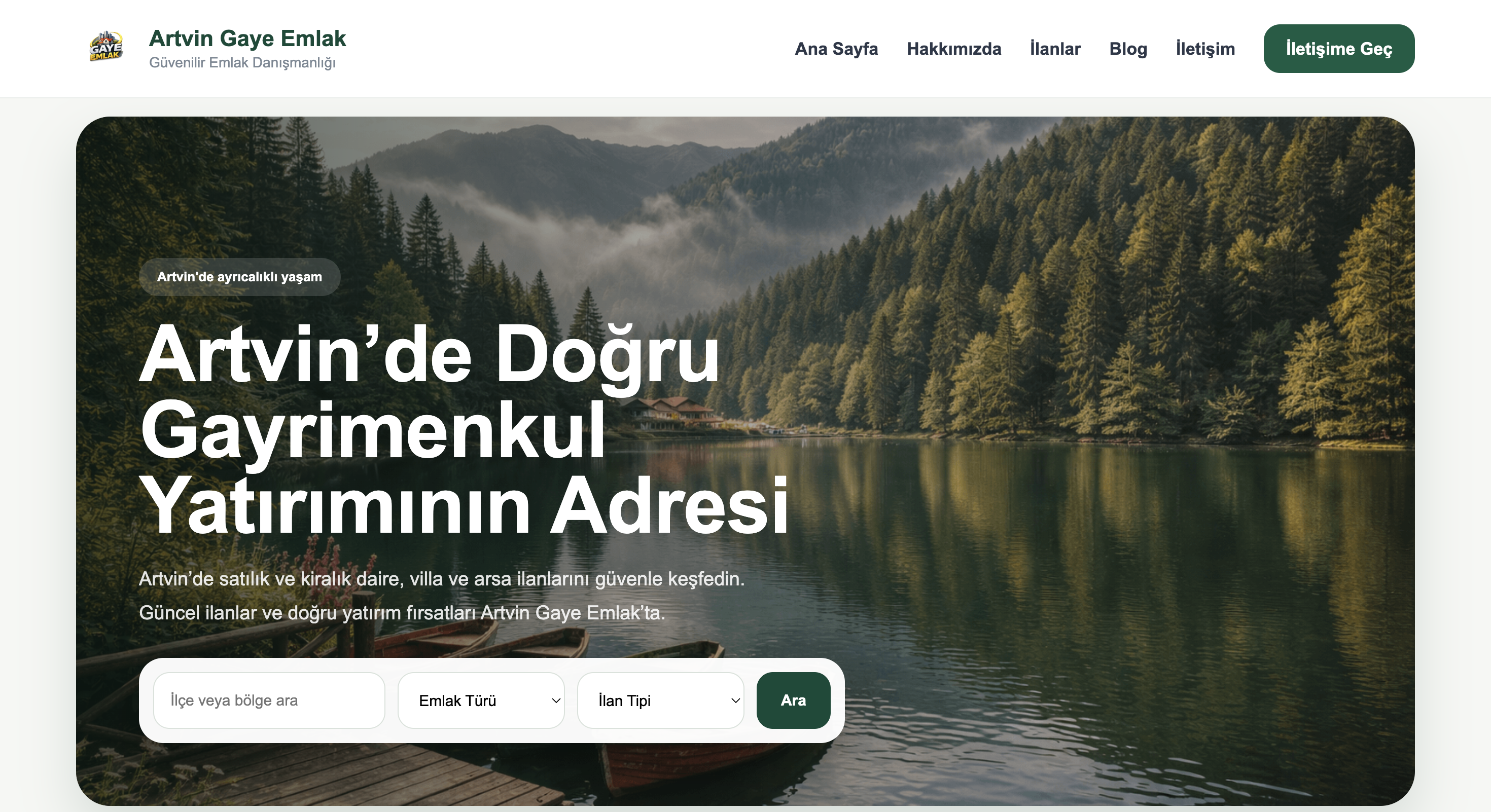Artvin Gaye Emlak projesi kapsamında, kullanıcıların ilanları kolayca inceleyebileceği modern ve işlevsel bir web sitesi geliştirdim. Projede, gayrimenkul listeleme, detay sayfaları ve yönetim paneli gibi temel özellikleri kullanıcı deneyimini ön planda tutarak tasarladım. Frontend ve backend entegrasyonunu sağlayarak, hızlı, güvenilir ve yönetilebilir bir emlak platformu oluşturdum. Proje Linki.